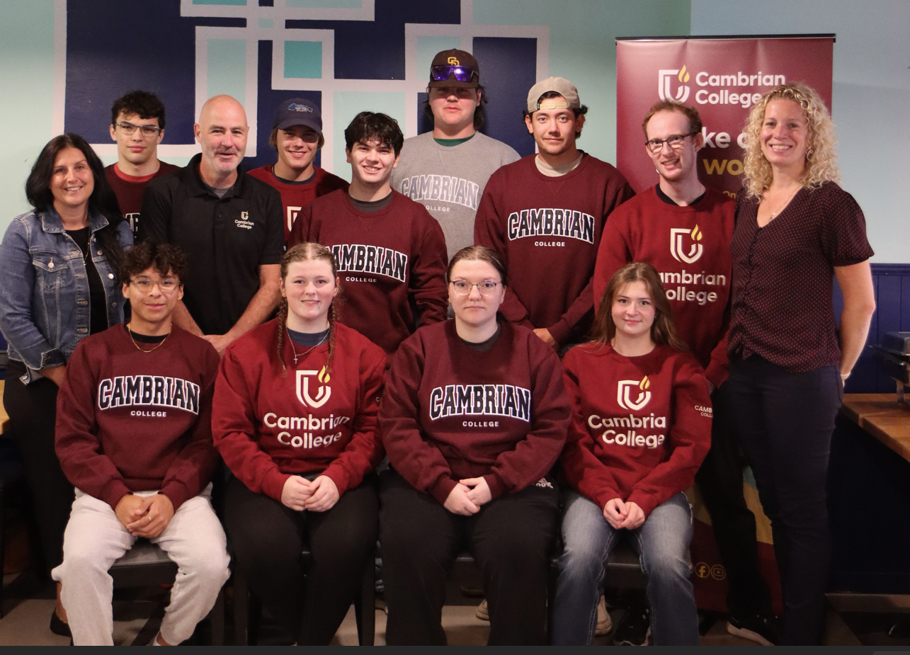 Cambrian College announced its 2025 recipients of the Schulich Builders Scholarships for skilled trades. Back row left to right: Kim Crane (Interim Dean, Skilled Trades), Curtis Klassen, Nelson Fraser (Coordinator, Carpentry Program), Dylan Pagnutti, Rylan Griese, Silas Anglin-Ramm, William McComb, Simon Gerow and Alison Caruso (Interim Chair, Engineering). Front row left to right: Cheveyo Enosse, Emily Watson, Ashlynn Caporossi, Bella Donnan.