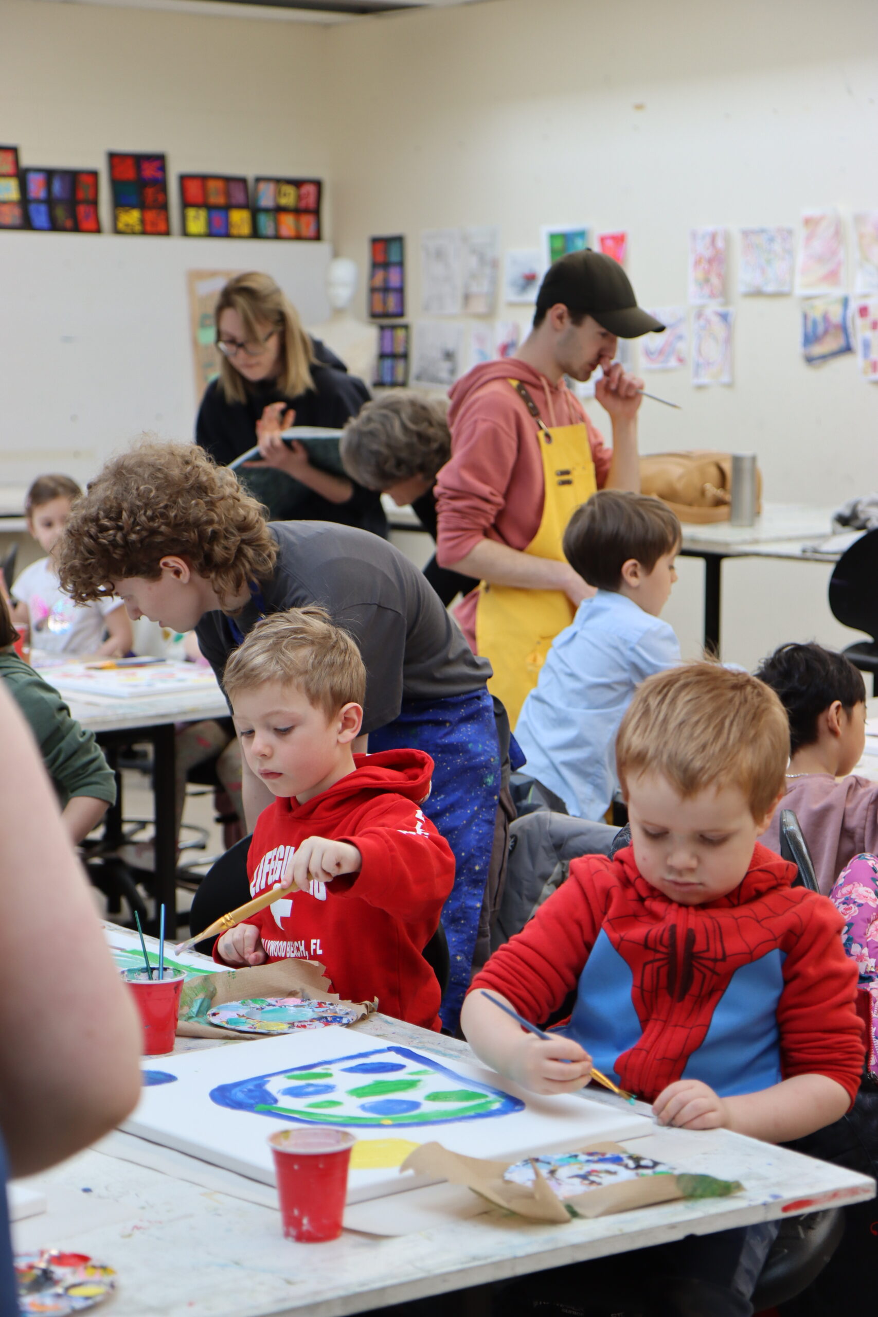 Under the guidance of the college students, the kindergarten students created their own works of art.