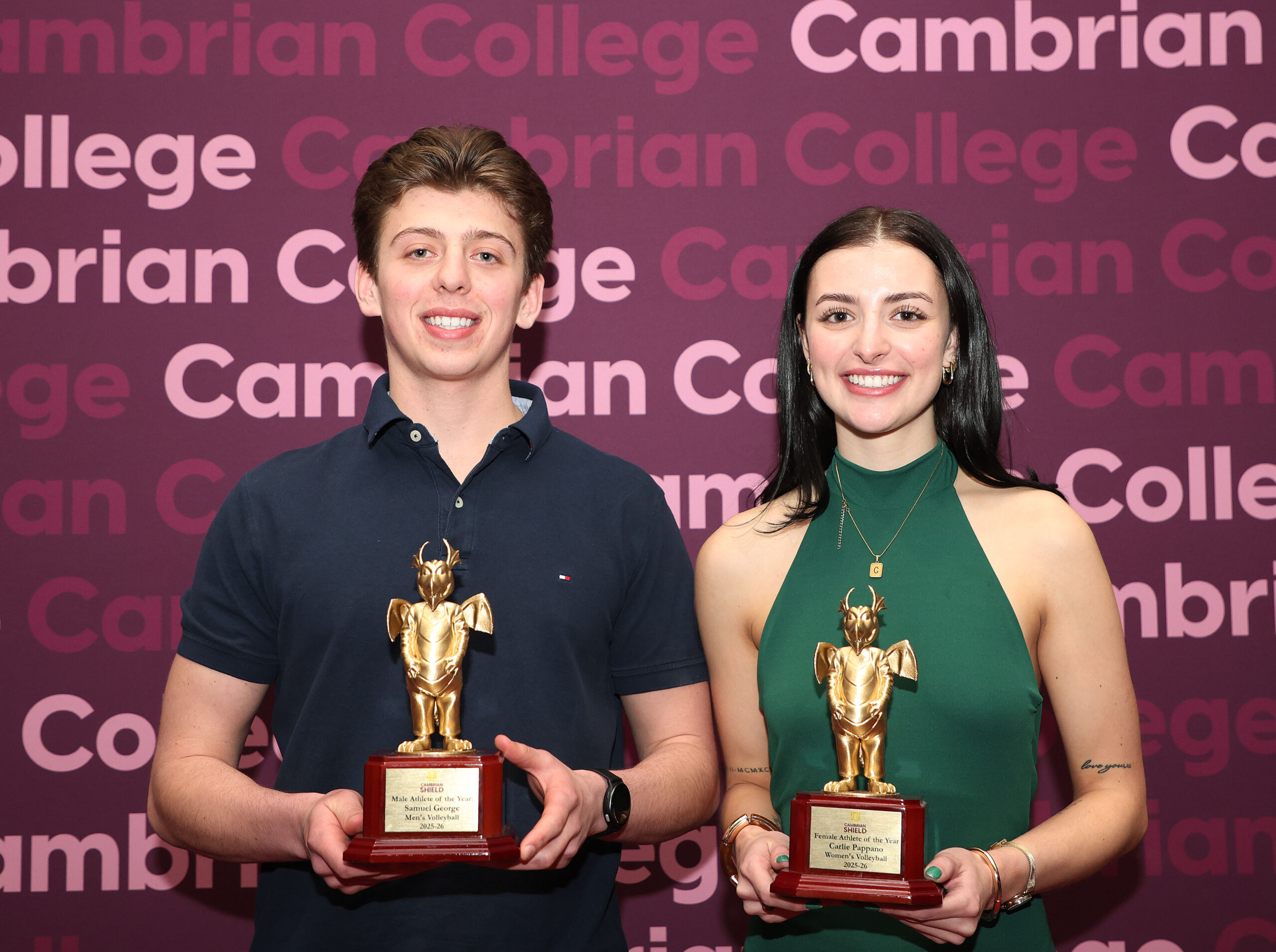 Cambrian College celebrated outstanding achievement in varsity sports at its annual Athletics Banquet. Carlie Pappano of North Bay was named Female Athlete of the Year, while Sudbury’s Sam George was selected Male Athlete of the Year.